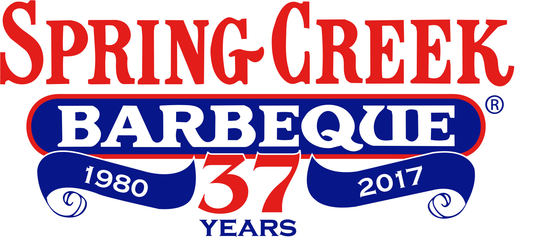 37 year logo red & blue ®